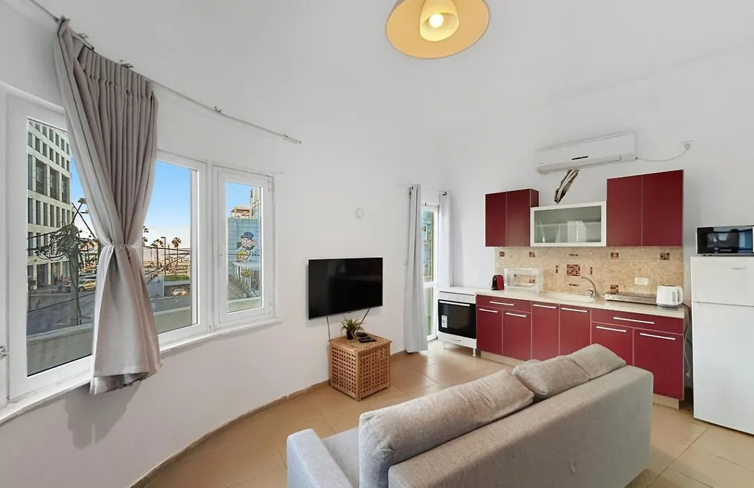 An equipped kitchen is provided at the property Hayarden Vibe - - 1 Bedroom With Sea Balcony By Vacay apartment offers access to Ben Gurion International airport, located within 27 minutes by car.